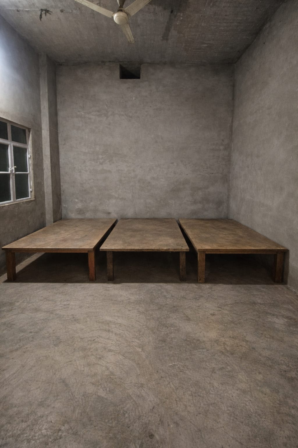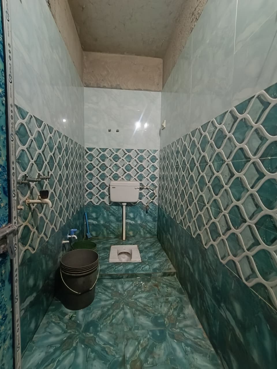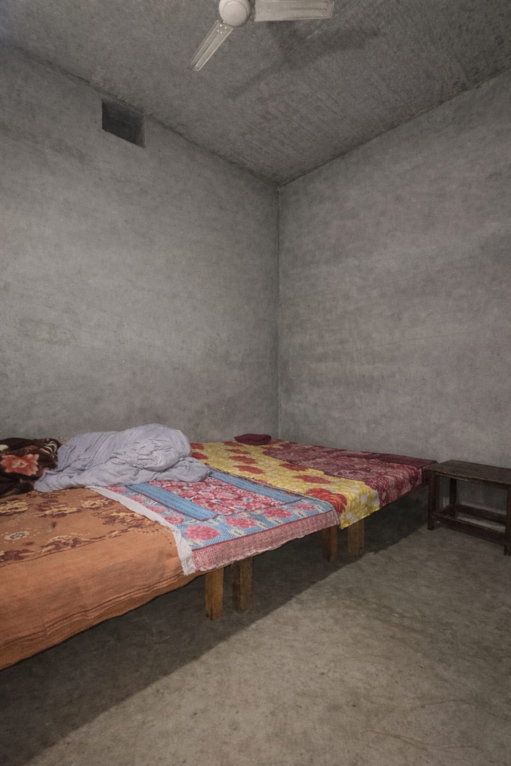 Compact share room with fresh green walls, good ventilation, ceiling fan, and concrete flooring. Ideal for students or working professionals looking for a simple, affordable stay.